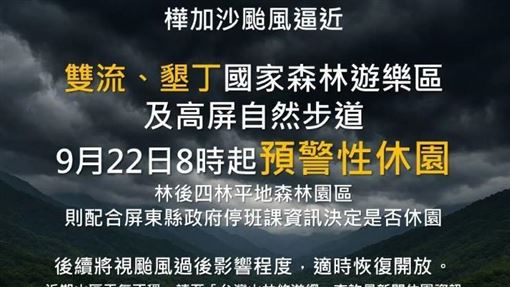 阿里山林鐵停駛、全台多處遊樂區22日封閉
